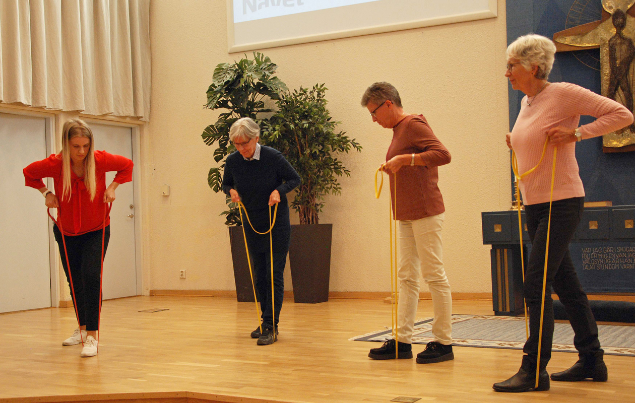 Vi gästades vid senaste träffen på Vasakyrkan i Umeå av Sofia Eriksson som hade valt rubriken ”Rörelserikedom för seniorer” för sitt program. Hon är friskvårdskoordinator på Navet Friskvård och propagerade för det undergörande pillret Träning. Många viktiga funktioner behåller man genom att träna. Vi stärker balansen, minskar fallrisken och även vikten samt orkar mer.