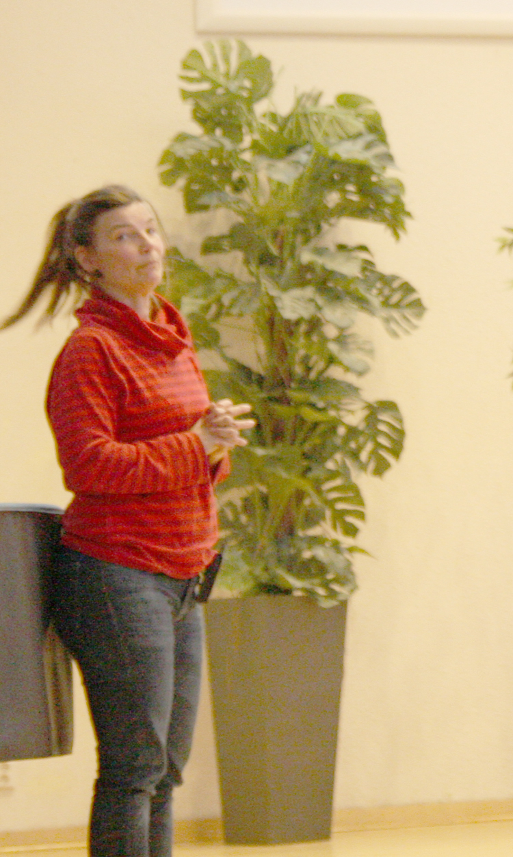 Helena Forsberg var dagens föredragshållare. Helena som är etnolog och trädgårdsmästare hade som rubrik på sitt föredrag: Skogens skafferi – vilda växter till mat och nytta. Hon började med att förklara vad Allemansrätten innebär, man bör vara försiktig och bör lämna skogen så det knappt syns att man varit där. Inte störa, inte förstöra är två ledord och att man tänker på att vissa växter är fridlysta. Hon fortsatte sedan med att berätta om sex användbara träd, som finns överallt, gran, tall, björk, en, rönn och sälg. Det som kan användas är bl.a. barr, blad, bark, kottar, skott, sav och kåda. Delar av granen kan t.ex användas till te, snaps, bröd, grönsak eller olja.